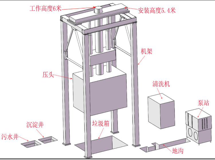 ◇設(shè)有垃圾儲(chǔ)存箱,適合集裝箱式散裝垃圾運(yùn)輸車(chē)卸料,減少運(yùn)輸費(fèi)用。